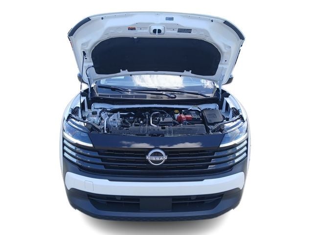 2-Tone Premium Paint, 4 Speakers, 4-Wheel Disc Brakes, ABS brakes, Air Conditioning, AM/FM radio, Auto High-beam Headlights, Automatic temperature control, Blind Spot Warning, Brake assist, Bumpers: body-color, Cloth Seat Trim, Driver door bin, Driver vanity mirror, Dual front impact airbags, Dual front side impact airbags, Electronic Stability Control, Emergency communication system, Exterior Parking Camera Rear, Front anti-roll bar, Front Bucket Seats, Front Center Armrest, Front reading lights, Front wheel independent suspension, Fully automatic headlights, Illuminated entry, Knee airbag, Low tire pressure warning, NissanConnect featuring Apple CarPlay and Android Auto, Occupant sensing airbag, Outside temperature display, Overhead airbag, Panic alarm, Passenger door bin, Passenger vanity mirror, Power door mirrors, Power steering, Power windows, Radio data system, Radio: AM/FM/SiriusXM Audio System, Rear anti-roll bar, Rear reading lights, Rear side impact airbag, Rear window defroster, Rear window wiper, Remote keyless entry, Security system, Speed control, Speed-sensing steering, Split folding rear seat, Spoiler, Sport steering wheel, Steering wheel mounted audio controls, Tachometer, Telescoping steering wheel, Tilt steering wheel, Traction control, Trip computer, Variably intermittent wipers, and Wheels: 17 Steel Flex with Full Covers.