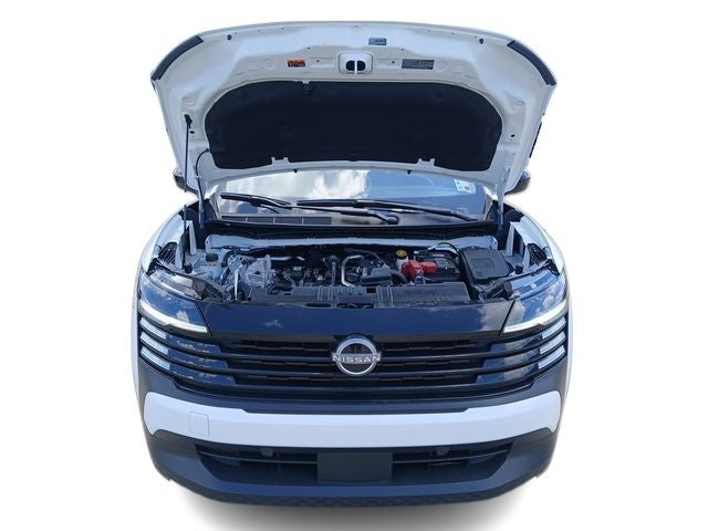 4 Speakers, 4-Wheel Disc Brakes, ABS brakes, Air Conditioning, AM/FM radio, Auto High-beam Headlights, Automatic temperature control, Blind Spot Warning, Brake assist, Bumpers: body-color, Cloth Seat Trim, Driver door bin, Driver vanity mirror, Dual front impact airbags, Dual front side impact airbags, Electronic Stability Control, Emergency communication system, Exterior Parking Camera Rear, Front anti-roll bar, Front Bucket Seats, Front Center Armrest, Front reading lights, Front wheel independent suspension, Fully automatic headlights, Illuminated entry, Knee airbag, Low tire pressure warning, NissanConnect featuring Apple CarPlay and Android Auto, Occupant sensing airbag, Outside temperature display, Overhead airbag, Panic alarm, Passenger door bin, Passenger vanity mirror, Power door mirrors, Power steering, Power windows, Radio data system, Radio: AM/FM/SiriusXM Audio System, Rear anti-roll bar, Rear reading lights, Rear side impact airbag, Rear window defroster, Rear window wiper, Remote keyless entry, Security system, Speed control, Speed-sensing steering, Split folding rear seat, Spoiler, Sport steering wheel, Steering wheel mounted audio controls, Tachometer, Telescoping steering wheel, Tilt steering wheel, Traction control, Trip computer, Variably intermittent wipers, and Wheels: 17 Steel Flex with Full Covers.