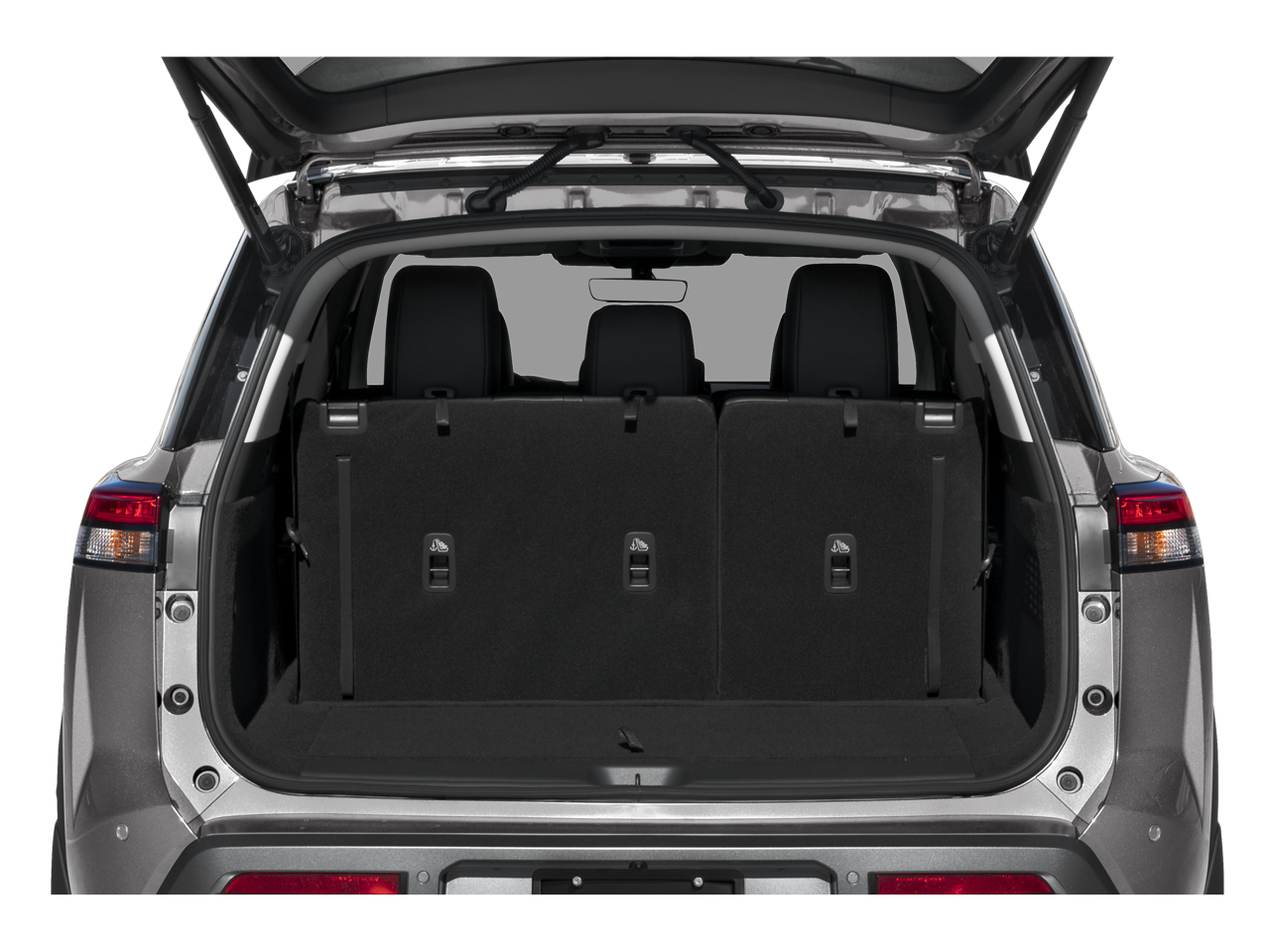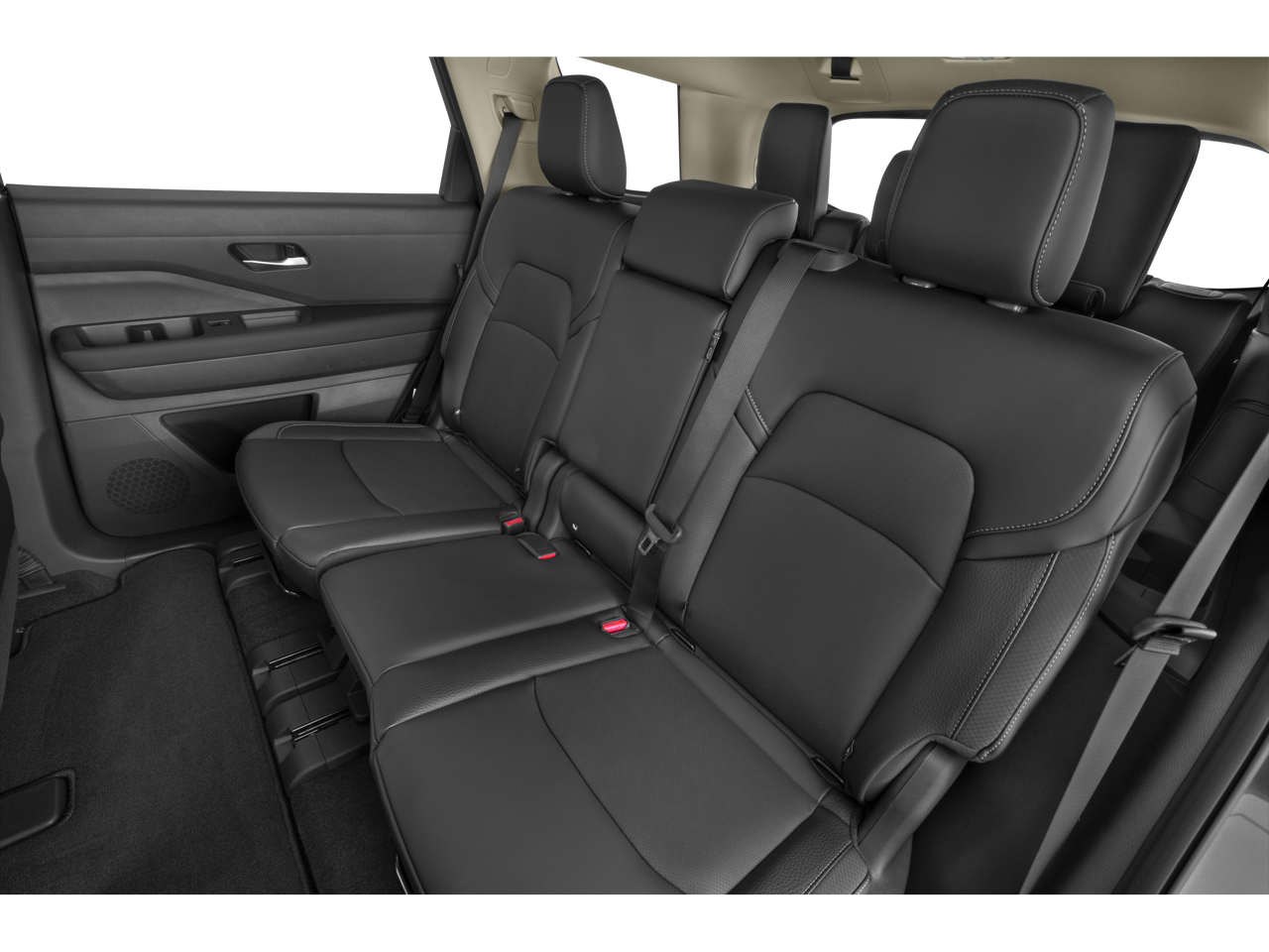 18 Machined Alloy Wheels, 3rd row seats: bench, 4-Wheel Disc Brakes, 6 Speakers, ABS brakes, Air Conditioning, Alloy wheels, AM/FM radio: SiriusXM w/360L, Auto High-beam Headlights, Auto-dimming Rear-View mirror, Automatic temperature control, Brake assist, Bumpers: body-color, Delay-off headlights, Driver door bin, Driver vanity mirror, Dual front impact airbags, Dual front side impact airbags, Electronic Stability Control, Emergency communication system: NissanConnect Services, Four wheel independent suspension, Front anti-roll bar, Front Bucket Seats, Front Center Armrest, Front dual zone A/C, Front reading lights, Fully automatic headlights, Garage door transmitter: HomeLink, Heated door mirrors, Heated Front Bucket Seats, Heated front seats, Heated steering wheel, Illuminated entry, Knee airbag, Low tire pressure warning, NissanConnect featuring Apple CarPlay and Android Auto, Occupant sensing airbag, Outside temperature display, Overhead airbag, Overhead console, Panic alarm, Passenger door bin, Passenger vanity mirror, Power door mirrors, Power driver seat, Power Liftgate, Power steering, Power windows, Premium Paint, Radio data system, Radio: AM/FM Audio System with NissanConnect, Rear air conditioning, Rear anti-roll bar, Rear reading lights, Rear seat center armrest, Rear side impact airbag, Rear window defroster, Rear window wiper, Reclining 3rd row seat, Remote keyless entry, Security system, Speed control, Speed-sensing steering, Split folding rear seat, Spoiler, Steering wheel mounted audio controls, Tachometer, TailorFit Appointed Seating Surfaces, Telescoping steering wheel, Tilt steering wheel, Traction control, Trip computer, Turn signal indicator mirrors, and Variably intermittent wipers.