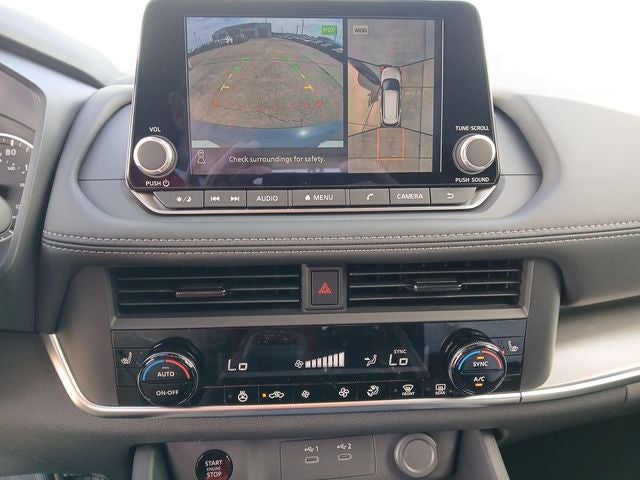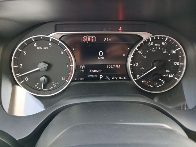 4-Wheel Disc Brakes, 6 Speakers, ABS brakes, Air Conditioning, Alloy wheels, AM/FM radio, Apple CarPlay/Android Auto, Auto High-beam Headlights, Automatic temperature control, Black Splash Guards (set of 4), Brake assist, Bumpers: body-color, Delay-off headlights, Driver door bin, Driver vanity mirror, Dual front impact airbags, Dual front side impact airbags, Electronic Stability Control, Emergency communication system: NissanConnect Services, Exterior Parking Camera Rear, First Aid Kit, Floor Mats with 1-Piece Cargo Area Protector, Four wheel independent suspension, Frameless Rearview Mirror with Universal Remote, Front anti-roll bar, Front Bucket Seats, Front Center Armrest, Front dual zone A/C, Front reading lights, Fully automatic headlights, Heated door mirrors, Heated Front Bucket Seats, Heated front seats, Heated steering wheel, Illuminated entry, Illuminated Kick Plates, Knee airbag, Low tire pressure warning, Occupant sensing airbag, Outside temperature display, Overhead airbag, Overhead console, Panic alarm, Passenger door bin, Passenger vanity mirror, Power door mirrors, Power driver seat, Power Liftgate, Power moonroof, Power steering, Power windows, Premium Paint, Prima-Tex Leatherette Seat Trim, Radio data system, Radio: AM/FM NissanConnect, Rear anti-roll bar, Rear Parking Sensors, Rear reading lights, Rear seat center armrest, Rear side impact airbag, Rear window defroster, Rear window wiper, Remote keyless entry, Retractable Cargo Cover, Speed control, Speed-sensing steering, Speed-Sensitive Wipers, Split folding rear seat, Spoiler, Steering wheel mounted audio controls, Tachometer, Telescoping steering wheel, Tilt steering wheel, Traction control, Trip computer, Variably intermittent wipers, and Wheels: 19 Black Painted and Machine Finished Alloy.