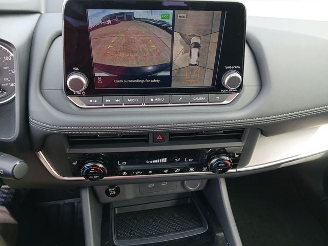 4-Wheel Disc Brakes, 6 Speakers, ABS brakes, Air Conditioning, Alloy wheels, AM/FM radio, Apple CarPlay/Android Auto, Auto High-beam Headlights, Automatic temperature control, Brake assist, Bumpers: body-color, Delay-off headlights, Driver door bin, Driver vanity mirror, Dual front impact airbags, Dual front side impact airbags, Electronic Stability Control, Emergency communication system: NissanConnect Services, Exterior Parking Camera Rear, Four wheel independent suspension, Front anti-roll bar, Front Bucket Seats, Front Center Armrest, Front dual zone A/C, Front reading lights, Fully automatic headlights, Heated door mirrors, Heated Front Bucket Seats, Heated front seats, Heated steering wheel, Illuminated entry, Knee airbag, Low tire pressure warning, Occupant sensing airbag, Outside temperature display, Overhead airbag, Overhead console, Panic alarm, Passenger door bin, Passenger vanity mirror, Power door mirrors, Power driver seat, Power Liftgate, Power moonroof, Power steering, Power windows, Prima-Tex Leatherette Seat Trim, Radio data system, Radio: AM/FM NissanConnect, Rear anti-roll bar, Rear Parking Sensors, Rear reading lights, Rear seat center armrest, Rear side impact airbag, Rear window defroster, Rear window wiper, Remote keyless entry, Speed control, Speed-sensing steering, Speed-Sensitive Wipers, Split folding rear seat, Spoiler, Steering wheel mounted audio controls, Tachometer, Telescoping steering wheel, Tilt steering wheel, Traction control, Trip computer, Variably intermittent wipers, and Wheels: 19 Black Painted and Machine Finished Alloy.