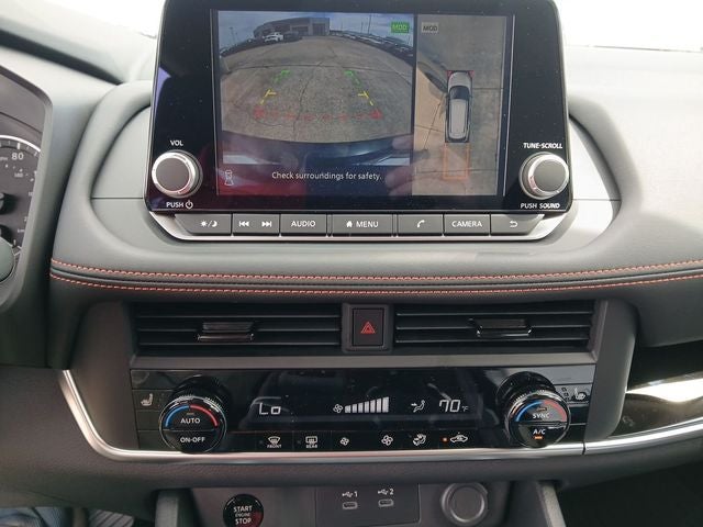 4-Wheel Disc Brakes, 6 Speakers, ABS brakes, Air Conditioning, Alloy wheels, AM/FM radio, Apple CarPlay/Android Auto, Auto High-beam Headlights, Automatic temperature control, Black Splash Guards (set of 4), Brake assist, Delay-off headlights, Driver door bin, Driver vanity mirror, Dual front impact airbags, Dual front side impact airbags, Electronic Stability Control, Emergency communication system: NissanConnect Services, Four wheel independent suspension, Frameless Rearview Mirror with Universal Remote, Front anti-roll bar, Front Bucket Seats, Front Center Armrest, Front dual zone A/C, Front reading lights, Fully automatic headlights, Heated door mirrors, Heated Front Bucket Seats, Heated front seats, Illuminated entry, Knee airbag, Leatherette and Ballistic Nylon Seating, Low tire pressure warning, Occupant sensing airbag, Outside temperature display, Overhead airbag, Overhead console, Panic alarm, Passenger door bin, Passenger vanity mirror, Power door mirrors, Power driver seat, Power Liftgate, Power steering, Power windows, Premium Paint, Radio data system, Radio: AM/FM NissanConnect, Rear anti-roll bar, Rear Parking Sensors, Rear seat center armrest, Rear side impact airbag, Rear window defroster, Rear window wiper, Remote keyless entry, Roof rack, Speed control, Speed-sensing steering, Speed-Sensitive Wipers, Split folding rear seat, Spoiler, Steering wheel mounted audio controls, Tachometer, Telescoping steering wheel, Tilt steering wheel, Traction control, Trip computer, Variably intermittent wipers, and Wheels: 17 Dark Painted Alloy.