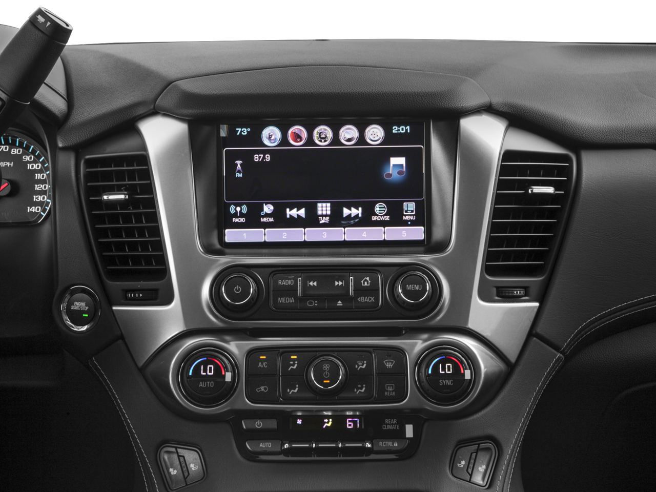 - Audio system, Chevrolet MyLink Radio with 8" diagonal color touch-screen AM/FM stereo, seek-and-scan and digital clock, includes Bluetooth® streaming audio for music and select phones; voice-activated technology for radio and phone; featuring Apple CarPlay capability for compatible phone; 5 USB ports and 1 auxiliary jack (Includes 2 USB ports when (AZ3) Split-bench front seat is ordered. Not available with (UE0) OnStar, delete.)