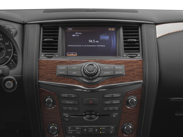 Recent Arrival! 13 Speakers, 2.937 Axle Ratio, 2nd & 3rd Row Carpeted Mats, 3rd row seats: split-bench, 4-Wheel Disc Brakes, ABS brakes, Activation Disclaimer, Air Conditioning, Alloy wheels, AM/FM radio: SiriusXM, Anti-whiplash front head restraints, Auto tilt-away steering wheel, Auto-dimming door mirrors, Auto-dimming Rear-View mirror, Auto-leveling suspension, Automatic Emergency Braking (AEB), Automatic temperature control, Blind Spot Warning, Brake assist, Bumpers: body-color, CD player, Delay-off headlights, Driver door bin, Driver vanity mirror, Dual front impact airbags, Dual front side impact airbags, Electronic Stability Control, Emergency communication system: NissanConnect Services, Four wheel independent suspension, Front anti-roll bar, Front Bucket Seats, Front Center Armrest, Front dual zone A/C, Front fog lights, Front reading lights, Fully automatic headlights, Garage door transmitter: HomeLink, Heated door mirrors, Heated Front Bucket Seats w/Driver Memory, Heated front seats, Illuminated entry, Intelligent Back-Up Intervention (I-BI), Intelligent Cruise Control w/Full-Spd Range (ICC), Intelligent Distance Control (I-DC), Intelligent Forward Collision Warning (I-FCW), Leather Shift Knob, Leather-Appointed Seat Trim, Low tire pressure warning, Memory seat, Navigation System, Occupant sensing airbag, Outside temperature display, Overhead airbag, Overhead console, Panic alarm, Passenger door bin, Passenger vanity mirror, Power door mirrors, Power driver seat, Power Liftgate, Power passenger seat, Power Sliding Moonroof w/Front Tilt & Rear Slide, Power steering, Power windows, Premium Package, Radio data system, Radio: Bose AM/FM/SXM/CD/MP3/HD Radio, Rain sensing wipers, Rear air conditioning, Rear anti-roll bar, Rear reading lights, Rear seat center armrest, Rear window defroster, Rear window wiper, Reclining 3rd row seat, Remote keyless entry, Roof rack: rails only, Roof Rail Cross Bars, Security system, Speed control, Speed-sensing steering, Speed-Sensitive Wipers, Split folding rear seat, Spoiler, Steering wheel memory, Steering wheel mounted audio controls, Tachometer, Telescoping steering wheel, Tilt steering wheel, Traction control, Trip computer, Turn signal indicator mirrors, Variably intermittent wipers, Voltmeter, Wheels: 20 Machined Finish Painted Alloy.