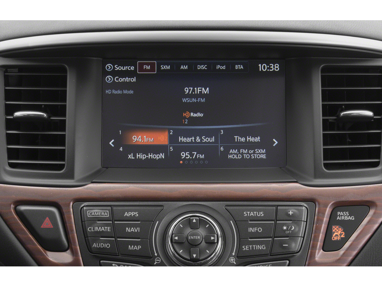 Recent Arrival! 13 Speakers, 3rd row seats: bench, 4-Wheel Disc Brakes, 5.25 Axle Ratio, ABS brakes, Air Conditioning, Alloy wheels, AM/FM radio: SiriusXM, AM/FM/CD Audio System, Auto tilt-away steering wheel, Auto-dimming Rear-View mirror, Automatic temperature control, Black Mold-in-Color Splash Guards, Blind Spot Warning, Bodyside moldings, Bose Premium Audio System, Brake assist, Bumpers: body-color, Carpeted Floor Mats (4-pc Set), CD player, Climate Controlled Front Bucket Seats, Cross Bars, Delay-off headlights, Driver door bin, Driver vanity mirror, Dual front impact airbags, Dual front side impact airbags, Electronic Stability Control, Emergency communication system: NissanConnect Services, Exterior Parking Camera Rear, Four wheel independent suspension, Front anti-roll bar, Front Bucket Seats, Front Center Armrest, Front dual zone A/C, Front fog lights, Front reading lights, Fully automatic headlights, Garage door transmitter: HomeLink, Heated door mirrors, Heated front seats, Heated rear seats, Heated steering wheel, Illuminated entry, Leather Seating Surfaces, Leather Shift Knob, Leather steering wheel, Low tire pressure warning, Memory seat, Navigation System, NissanConnect w/Navigation & Services, Occupant sensing airbag, Outside temperature display, Overhead airbag, Overhead console, Panic alarm, Passenger door bin, Passenger vanity mirror, Power door mirrors, Power driver seat, Power Liftgate, Power moonroof, Power passenger seat, Power steering, Power windows, Radio data system, Rear air conditioning, Rear anti-roll bar, Rear Bumper Protector, Rear Parking Sensors, Rear reading lights, Rear seat center armrest, Rear window defroster, Rear window wiper, Reclining 3rd row seat, Remote keyless entry, Security system, SiriusXM Traffic, Speed control, Speed-sensing steering, Speed-Sensitive Wipers, Split folding rear seat, Spoiler, Steering wheel memory, Steering wheel mounted audio controls, Tachometer, Telescoping steering wheel, Tilt steering wheel, Traction control, Trip computer, Turn signal indicator mirrors, Variably intermittent wipers, Ventilated front seats, Welcome Lighting, Wheels: 20 x 7.5 J Machined Aluminum-Alloy. Odometer is 8472 miles below market average!