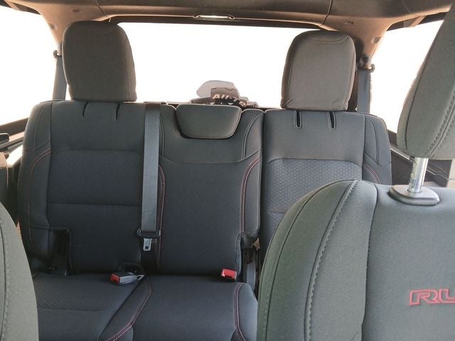 1-Year SiriusXM Guardian Trial, 240 Amp Alternator, 4-Wheel Disc Brakes, 4.10 Rear Axle Ratio, 4G LTE Wi-Fi Hot Spot, 5-Year SiriusXM Traffic Service, 5-Year SiriusXM Travel Link Service, 7 & 4 Pin Wiring Harness, 700 Amp Maintenance Free Battery, 8 Speakers, 8.4 Radio & Premium Audio Group, 8.4 Touchscreen Display, ABS brakes, Advanced Brake Assist, Advanced Safety Group, Air Conditioning, Alloy wheels, Alpine Premium Audio System, AM/FM radio: SiriusXM, Apple CarPlay/Android Auto, Auto High Beam Headlamp Control, Auto-Dimming Rear-View Mirror, Automatic temperature control, Aux Battery, Auxiliary Switches, Blind Spot & Cross Path Detection, Brake assist, Class II Receiver Hitch, Cold Weather Group, Compass, Daytime Running Lamps LED Accents, Delay-off headlights, Driver door bin, Driver vanity mirror, Dual front impact airbags, Dual front side impact airbags, Electronic Stability Control, Emergency/Assistance Call, For Details, Visit DriveUconnect.com, Front anti-roll bar, Front Bucket Seats, Front Center Armrest w/Storage, Front dual zone A/C, Front fog lights, Front LED Fog Lamps, Front reading lights, Full Speed Forward Collision Warning Plus, Fully automatic headlights, Garage door transmitter, GPS Navigation, HD Radio, Heated door mirrors, Heated Front Seats, Heated Steering Wheel, Illuminated entry, Integrated Off-Road Camera, Integrated roll-over protection, Leather steering wheel, LED Lighting Group, LED Premium Reflector Headlamps, LED Taillamps, Low tire pressure warning, Manufacturer's Statement of Origin, MOPAR All-Weather Floor Mats (DISC), MOPAR Hinge-Gate Reinforcement, Non-Lock Fuel Cap w/o Discriminator, Occupant sensing airbag, Off-Road Info Pages, Outside temperature display, Panic alarm, ParkSense Rear Park Assist System, ParkView Rear Back-Up Camera, Passenger door bin, Passenger vanity mirror, Performance Suspension, Power door mirrors, Power steering, Power windows, Premium Black Sunrider Soft Top, Premium Cloth Low-Back Bucket Seats, Quick Order Package 23R, Radio data system, Radio: Uconnect 4 w/7 Display, Radio: Uconnect 4C Nav w/8.4 Display, Rear anti-roll bar, Rear reading lights, Remote keyless entry, Safety Group, Security system, SiriusXM Traffic Plus, SiriusXM Travel Link, Speed control, Split folding rear seat, Steel Bumper Group, Steel Front Bumper, Steel Rear Bumper, Steering wheel mounted audio controls, Stop-Start Dual Battery System, Tachometer, Telescoping steering wheel, Tilt steering wheel, Traction control, Trailer Tow & HD Electrical Group, Trip computer, Variably intermittent wipers, Voltmeter, Wheels: 17 x 7.5 Machined w/Black Pockets.