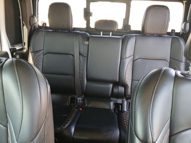 110 MPH Vehicle Max Speed Calibration, 240 Amp Alternator, 3.73 Rear Axle Ratio, 4-Wheel Disc Brakes, 9 Speakers, ABS brakes, Advanced Brake Assist, Advanced Safety Group, Air Conditioning, Alloy wheels, AM/FM radio: SiriusXM, Anti-Spin Differential Rear Axle, Apple CarPlay/Android Auto, Auto High Beam Headlamp Control, Auto-dimming Rear-View mirror, Automatic temperature control, Blind Spot & Cross Path Detection, Body Color 3-Piece Hard Top, Body Color Front Bumper, Body Color Grille w/Gloss Black Rings, Body Color Rear Bumper w/Step Pads, Body-Color Door & Tailgate Handles, Brake assist, Bridgestone Brand Tires, Caramel Interior Accents, Class IV Receiver Hitch, Compass, Corning Gorilla Glass, Dana M210 Wide Front Axle, Dana M220 Wide Rear Axle, Daytime Running Lamps LED Accents, Delay-off headlights, Driver door bin, Driver vanity mirror, Dual front impact airbags, Dual front side impact airbags, Electronic Stability Control, Emergency communication system: SiriusXM Guardian, Exterior Mirrors w/Supplemental Signals, Freedom Panel Storage Bag, Front anti-roll bar, Front Bucket Seats, Front Center Armrest w/Storage, Front dual zone A/C, Front fog lights, Front LED Fog Lamps, Front License Plate Bracket, Front reading lights, Full Body Color Fender Flares, Full Length Floor Console Premium Armrest, Full Speed Forward Collision Warning Plus, Fully automatic headlights, Garage door transmitter, Gray/Black Trail Rated Badge, Heated door mirrors, Heavy-Duty Engine Cooling, High Altitude Package, Illuminated entry, Integrated roll-over protection, Jeep Badge, Leather steering wheel, Leather Wrapped Park Brake Handle, Leather Wrapped Shift Knob, Leather-Trimmed Bucket Seats, LED Lighting Group, LED Park Turn Lamps, LED Premium Reflector Headlamps, LED Taillamps, Low tire pressure warning, MOPAR All-Weather Slush Mats, MOPAR Hardtop Headliner, MOPAR Spray In Bedliner, Navigation System, No Soft Top, Normal Duty Plus Suspension, Occupant sensing airbag, Outside temperature display, Overland Cloth Bucket Seats, Panic alarm, ParkSense Rear Park Assist System, ParkView Rear Back-Up Camera, Passenger door bin, Passenger vanity mirror, Power door mirrors, Power steering, Power windows, Premium Dark Exterior Accents, Quick Order Package 24N High Altitude, Radio data system, Radio: Uconnect 4C Nav w/8.4 Display, Rear anti-roll bar, Rear Armrest w/Cupholder Seat, Rear reading lights, Rear Sliding Window, Rear Window Defroster, Remote keyless entry, Remote Start System, Safety Group, Security system, Speed control, Split folding rear seat, Sport Front Shock Absorbers, Sport Rear Shock Absorbers, Sport Suspension, Steering wheel mounted audio controls, Tachometer, Telescoping steering wheel, Tilt steering wheel, Traction control, Trailer Hitch Zoom, Trailer Tow Package, Trip computer, Variably intermittent wipers, Voltmeter, Wheels: 18 x 7.5 Granite Crystal Aluminum, Wheels: 20 x 8 Gloss Black Aluminum, Wrapped I/P Bezel w/Caramel Stitch.