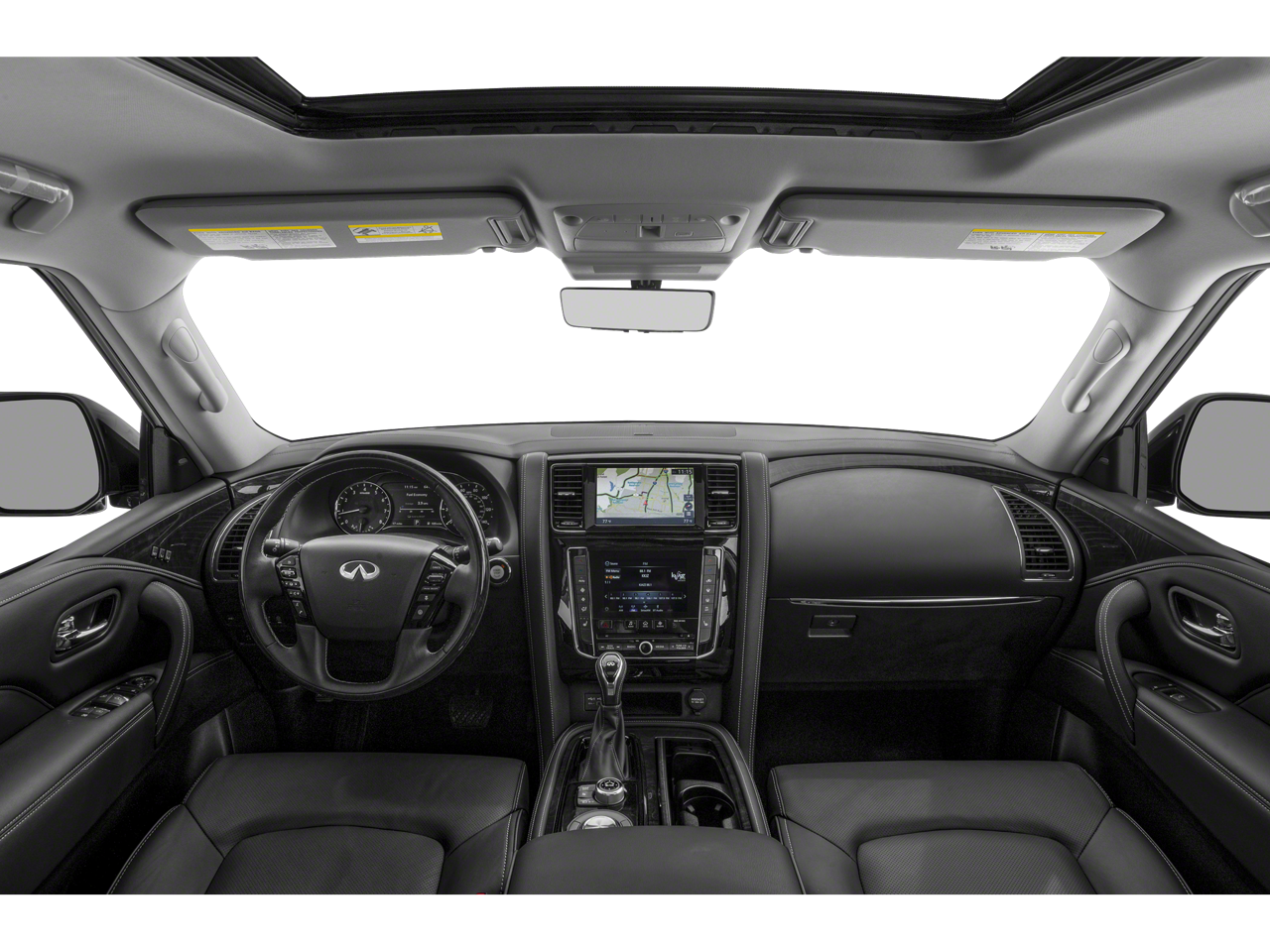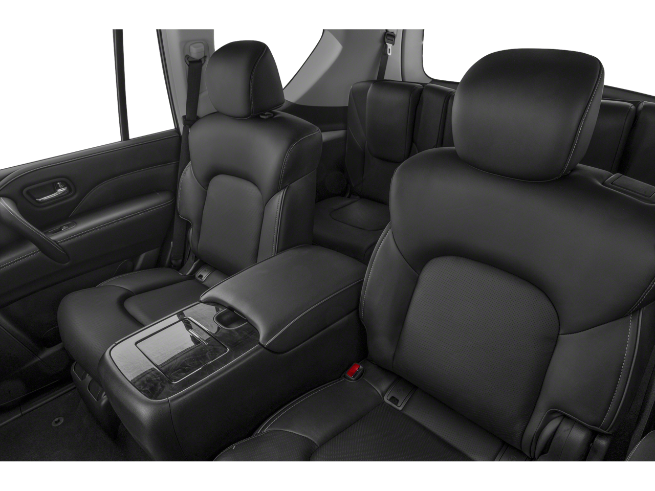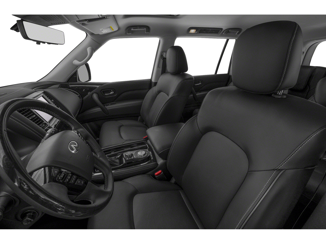 Recent Arrival! 13 Speakers, 2.937 Axle Ratio, 20 Aluminum Alloy Wheels, 3rd row seats: bench, 4-Wheel Disc Brakes, ABS brakes, Air Conditioning, Alloy wheels, AM/FM radio: SiriusXM, Anti-whiplash front head restraints, Apple CarPlay/Android Auto, Auto High-beam Headlights, Auto tilt-away steering wheel, Auto-dimming door mirrors, Auto-dimming Rear-View mirror, Auto-leveling suspension, Automatic temperature control, Brake assist, Bumpers: body-color, Compass, Delay-off headlights, Driver door bin, Driver vanity mirror, Dual front impact airbags, Dual front side impact airbags, Electronic Stability Control, Emergency communication system: INFINITI InTouch, Four wheel independent suspension, Front anti-roll bar, Front Bucket Seats, Front Center Armrest, Front dual zone A/C, Front fog lights, Front reading lights, Fully automatic headlights, Garage door transmitter: HomeLink, Heated door mirrors, Heated Front Bucket Seats, Heated front seats, Heated steering wheel, Illuminated entry, Leather Shift Knob, Leather steering wheel, Leather-Appointed Seats, Literature Kit, Low tire pressure warning, Memory seat, Navigation system: INFINITI InTouch Navigation, Occupant sensing airbag, Outside temperature display, Overhead airbag, Overhead console, Panic alarm, Passenger door bin, Passenger vanity mirror, Power door mirrors, Power driver seat, Power Liftgate, Power moonroof, Power passenger seat, Power steering, Power windows, Radio data system, Radio: Bose Premium Audio System w/13 Speakers, Rain sensing wipers, Rear air conditioning, Rear anti-roll bar, Rear reading lights, Rear seat center armrest, Rear window defroster, Rear window wiper, Reclining 3rd row seat, Remote keyless entry, Security system, Speed control, Speed-sensing steering, Split folding rear seat, Spoiler, Steering wheel memory, Steering wheel mounted audio controls, Tachometer, Telescoping steering wheel, Tilt steering wheel, Traction control, Trip computer, Turn signal indicator mirrors, Variably intermittent wipers, Voltmeter.