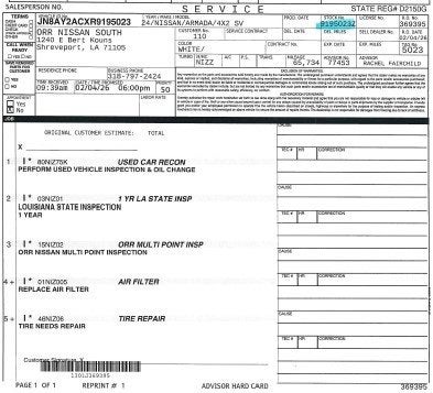 - Vehicle Name: Nissan Armada