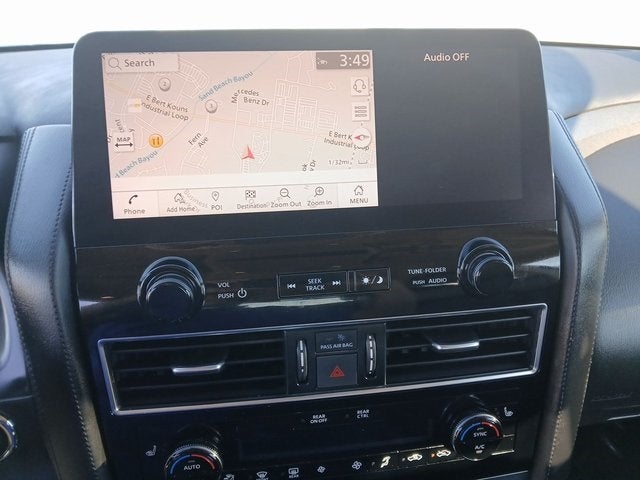 Recent Arrival! 18 x 8J Alloy Wheels, 2.937 Axle Ratio, 3rd row seats: split-bench, 4-Wheel Disc Brakes, 6 Speakers, ABS brakes, Air Conditioning, Alloy wheels, AM/FM radio: SiriusXM, Anti-whiplash front head restraints, Auto High-beam Headlights, Auto tilt-away steering wheel, Auto-dimming Rear-View mirror, Auto-leveling suspension, Automatic temperature control, Brake assist, Bumpers: body-color, Delay-off headlights, Driver door bin, Driver vanity mirror, Dual front impact airbags, Dual front side impact airbags, Electronic Stability Control, Emergency communication system: NissanConnect Services, Exterior Parking Camera Rear, Four wheel independent suspension, Front anti-roll bar, Front Bucket Seats, Front Center Armrest, Front dual zone A/C, Front fog lights, Front reading lights, Fully automatic headlights, Garage door transmitter: HomeLink, Heated door mirrors, Heated Front Bucket Seats, Heated front seats, Illuminated entry, Knee airbag, Leather Shift Knob, Leather steering wheel, Leatherette Seat Trim, Low tire pressure warning, Navigation System, Occupant sensing airbag, Outside temperature display, Overhead airbag, Overhead console, Panic alarm, Passenger door bin, Passenger vanity mirror, Power door mirrors, Power driver seat, Power passenger seat, Power steering, Power windows, Radio: NissanConnect w/SiriusXM, Rear air conditioning, Rear anti-roll bar, Rear reading lights, Rear seat center armrest, Rear window defroster, Rear window wiper, Reclining 3rd row seat, Remote keyless entry, Security system, Speed control, Speed-sensing steering, Speed-Sensitive Wipers, Split folding rear seat, Spoiler, Steering wheel mounted audio controls, Tachometer, Telescoping steering wheel, Tilt steering wheel, Traction control, Trip computer, Turn signal indicator mirrors, Variably intermittent wipers, Voltmeter.